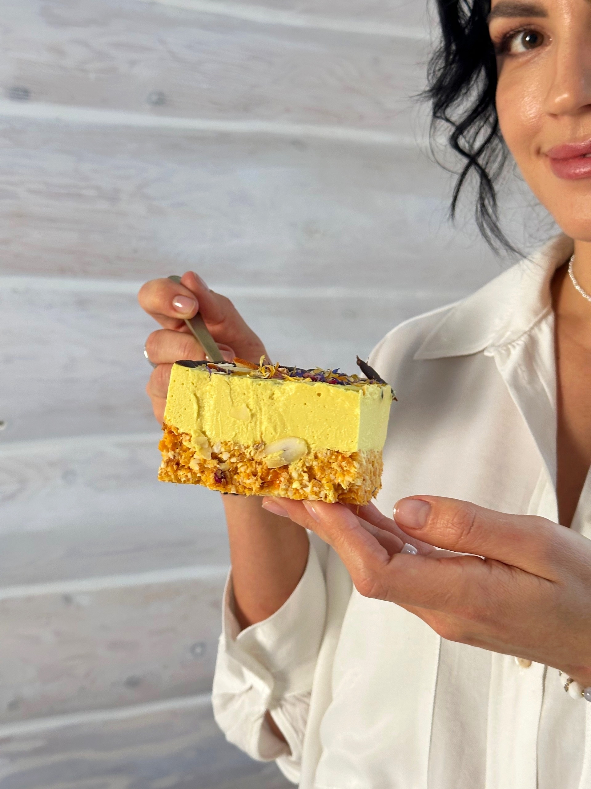Крем: кешью, кокосовое молоко, кокосовое масло, сироп топинамбура, вишня, агар- агар