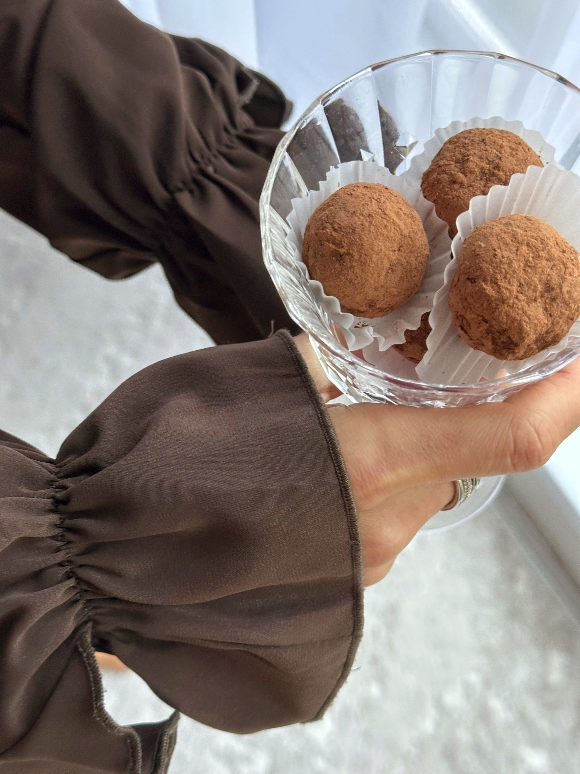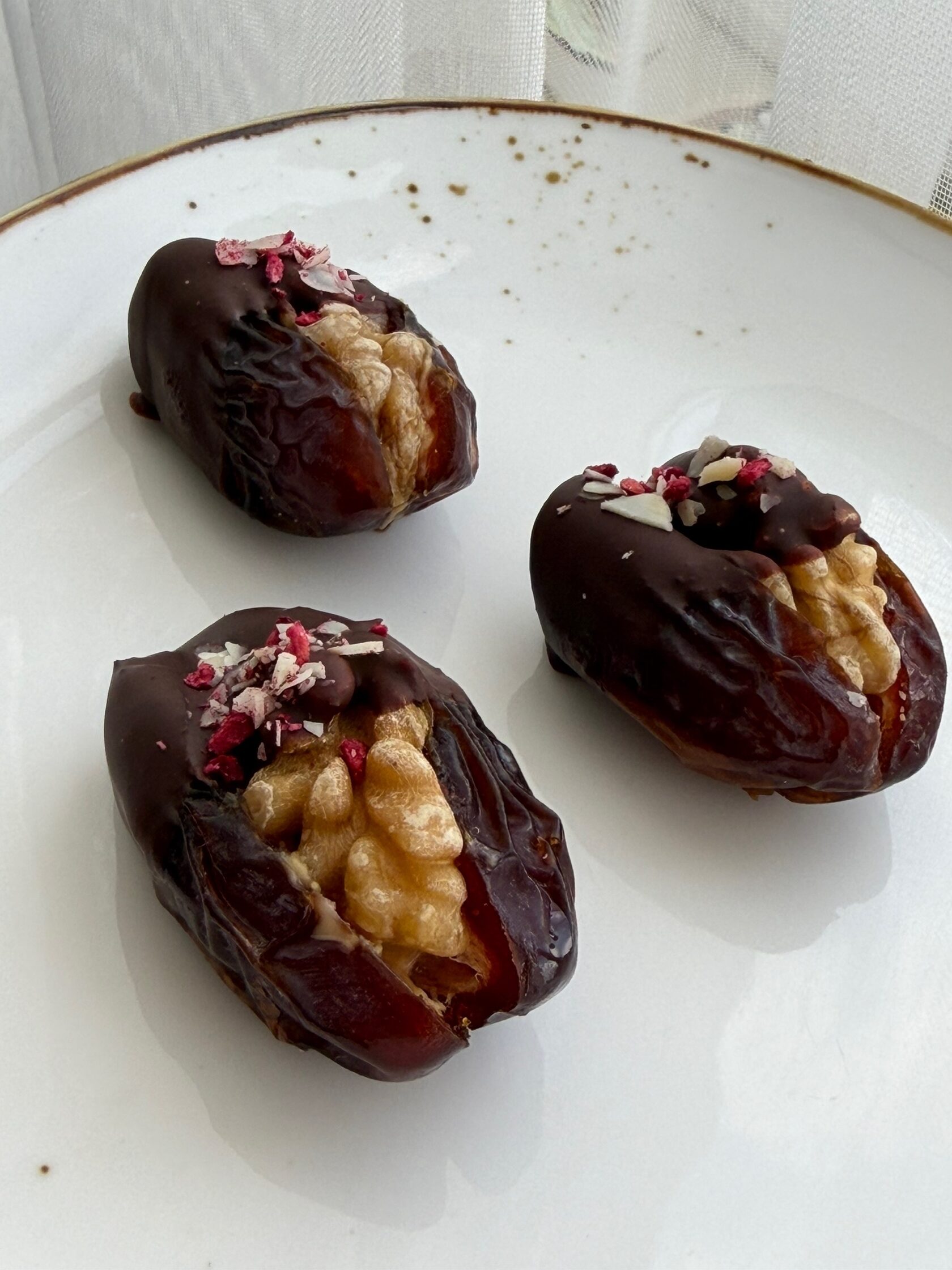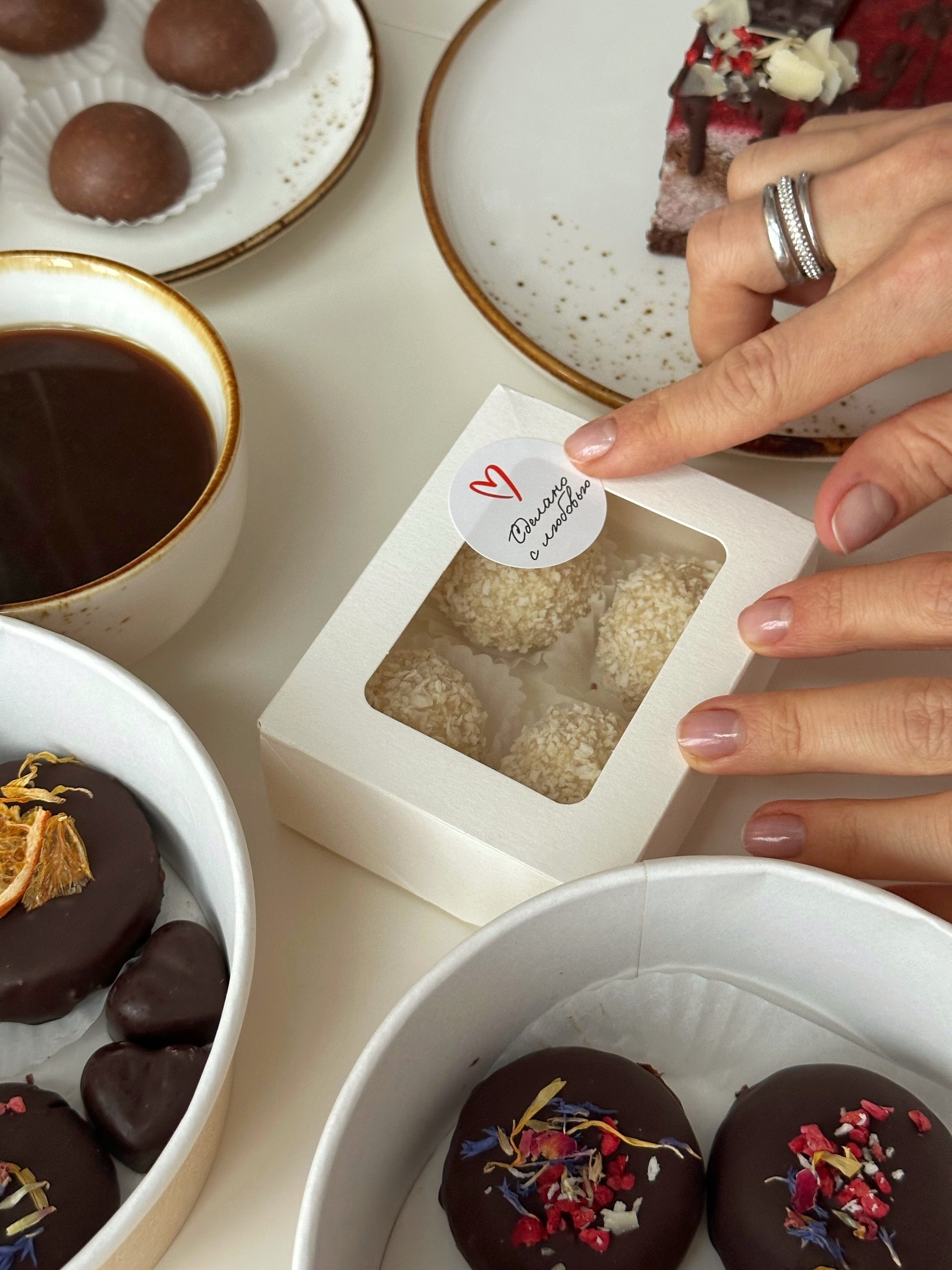 Состав: миндаль, грецкий орех, финики, какао порошка, вишня, сироп топинамбура