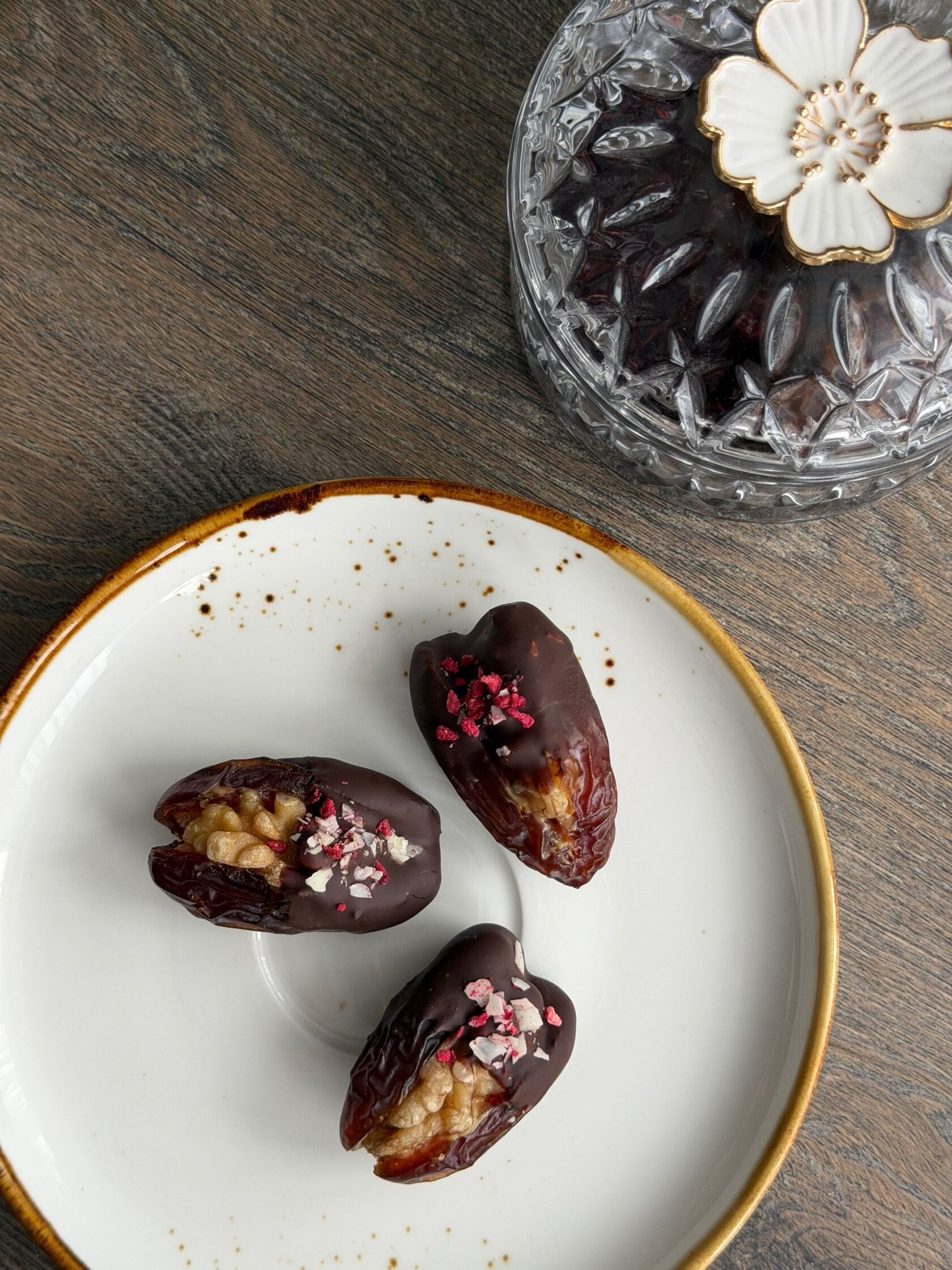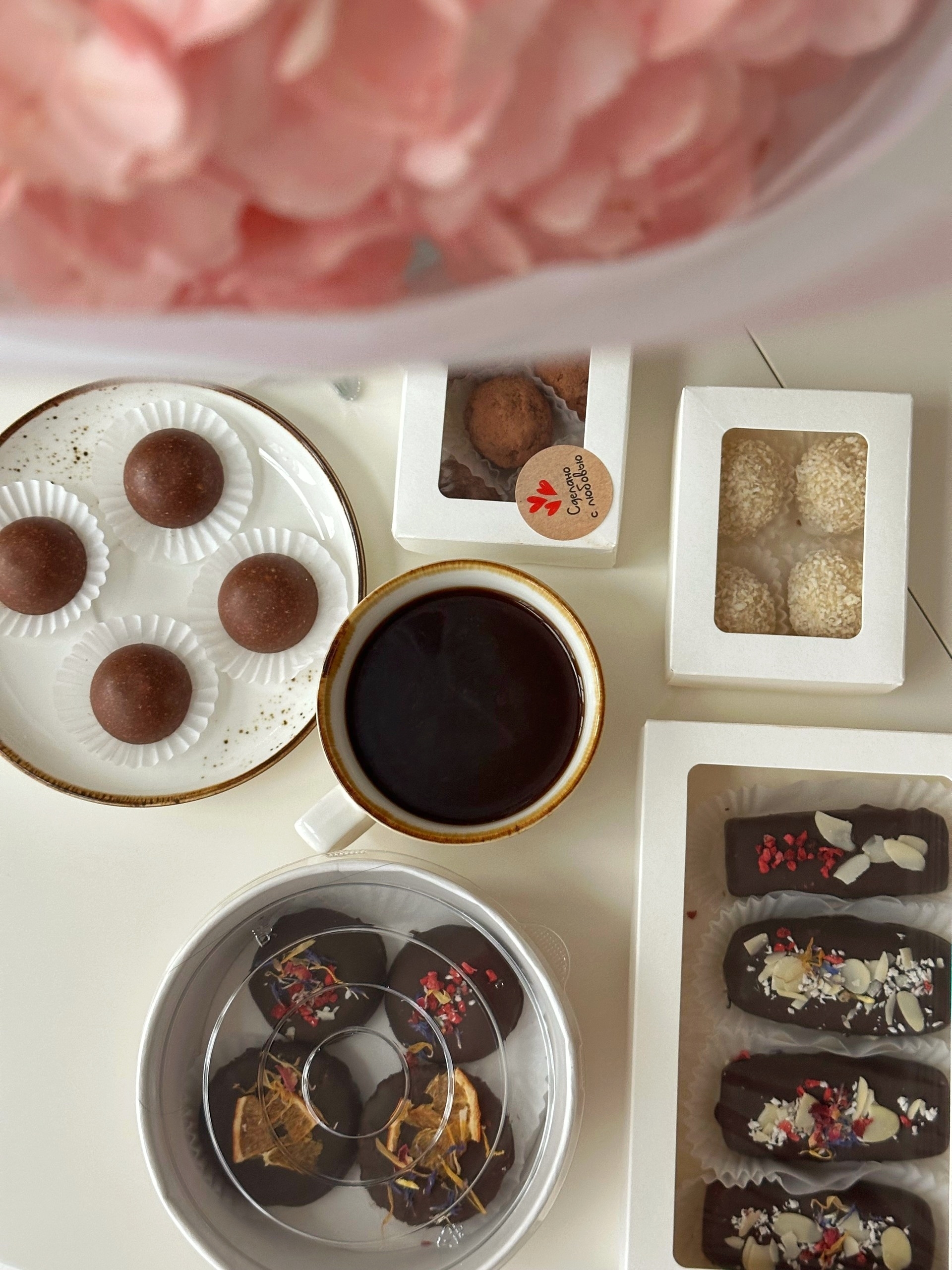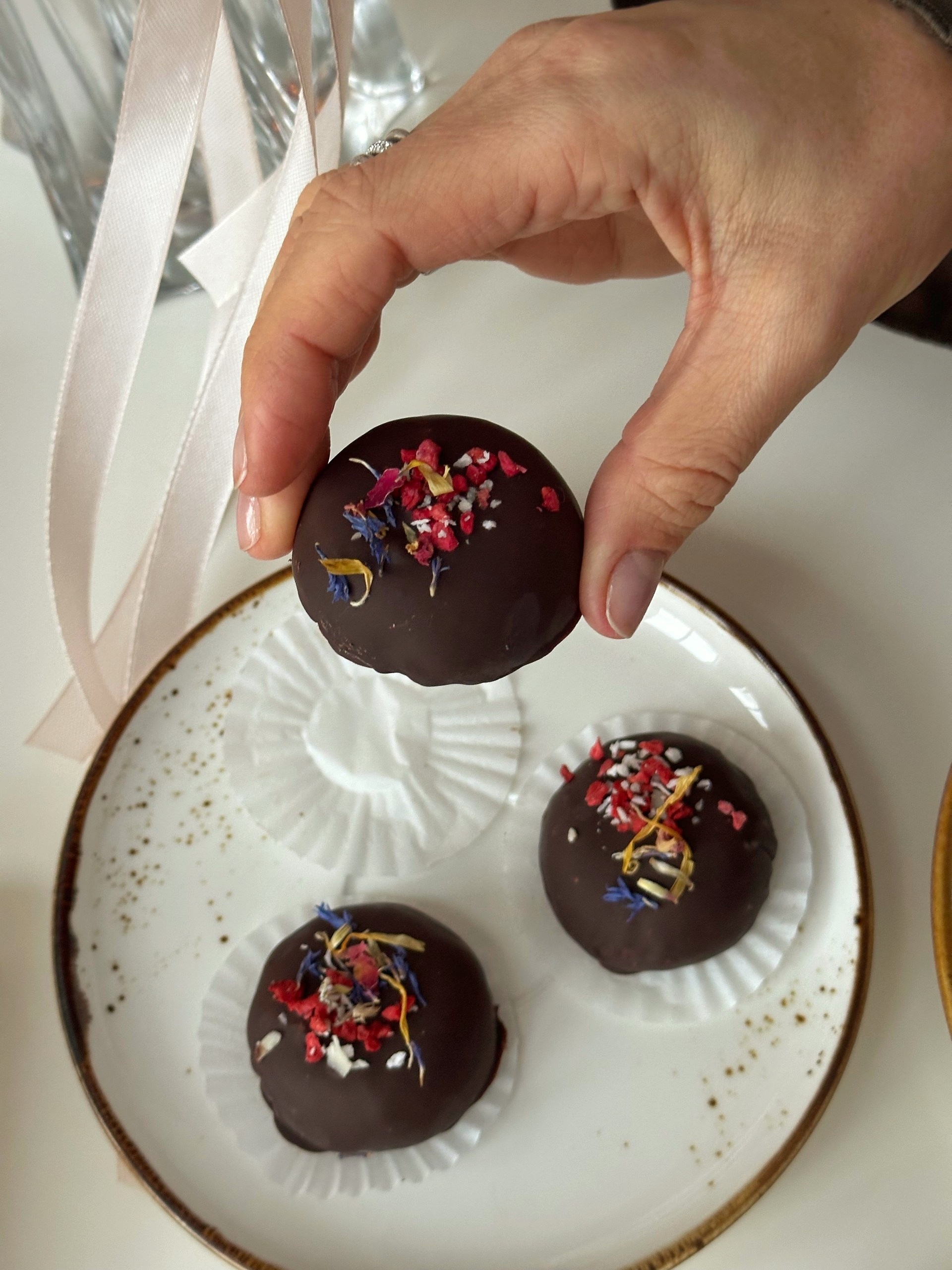 Состав: миндаль, грецкий орех, финики, какао порошка, вишня, сироп топинамбура